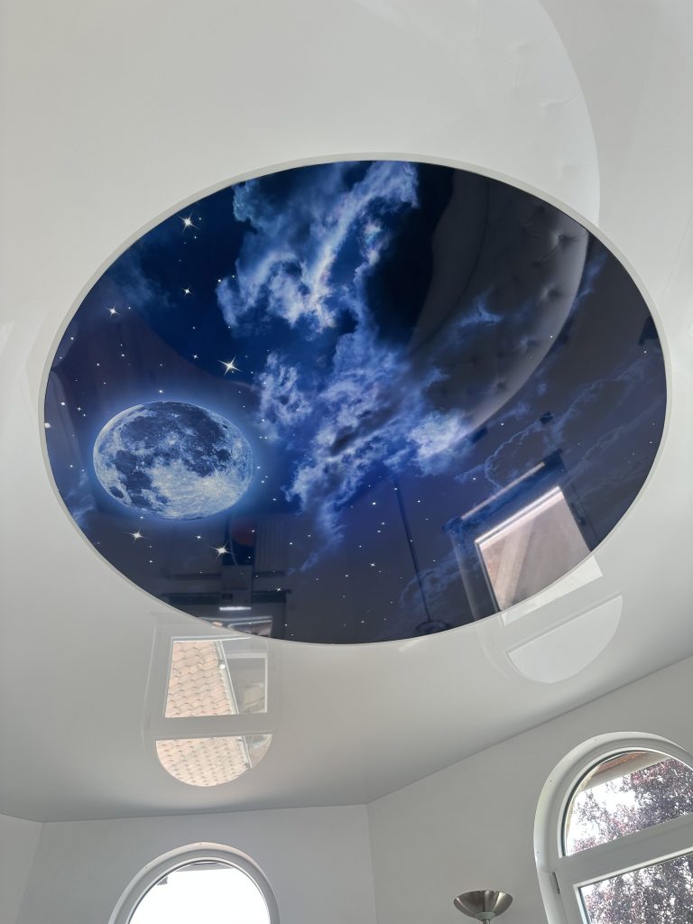 bieten die einzigartige Möglichkeit, durch Bilder, Fotos oder künstlerische Kompositionen eine Atmosphäre im Raum zu schaffen, die auf der Deckenoberfläche reproduziert werden kann. Dies ist eine stilvolle und individuelle Lösung für die Inneneinrichtung.